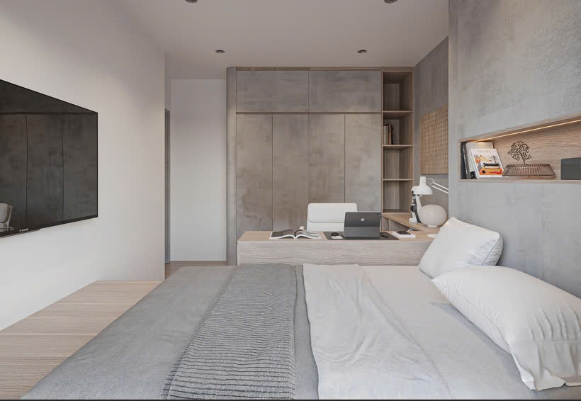 Nội Thất Phòng Ngủ đơn giản đặc trưng bởi tone màu trắng, sáng, đồ nội thất đa năng và ít chi tiết. Phong cách này rất thích hợp cho các phòng ngủ diện tích nhỏ.