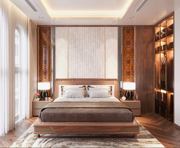 Diện tích 15m2 cho phép gia chủ có thể thoải mái thiết kế thi công nội thất phòng ngủ. Đồng thời cũng không gặp quá nhiều khó khăn trong việc bài trí các món đồ nội thất. Gia chủ có thể đặt chiếc giường ngủ lớn cùng với bộ bàn ghế trang điểm hoành tráng. Bên cạnh đó còn có thể cân nhắc đến việc thiết kế nhà vệ sinh khép kính nhé!
